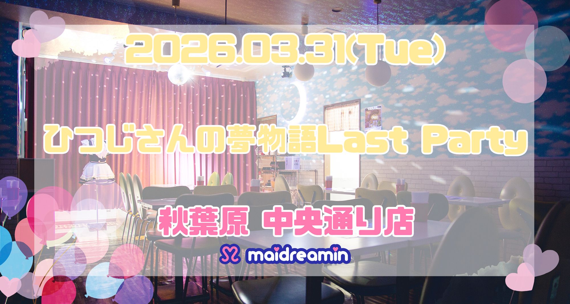 〜ひつじさんの夢物語Last Party〜 ご主人様・お嬢様 こんにちは🐑🌙 眠るの大好きねむりんです💤 💤 この度、ねむりんは2026年3月31日をもちまして めいどりーみんをファイナルいたします! お給仕を初めてから約3年 、QSCSegg兼リーダーとして約1年半、たくさんのご主人様・お嬢様とお会いできたこと! たくさんの物語を一緒に作ってくださったこと! 本当にありがとうございます💖 最後に皆さんに感謝を伝える場を設けていただきました‼️ ぜひねむりんのラストイベントでは今までの「ありがとう」を伝えさせてください🙇🏻♀️🙇🏻♀️ 日時☆2026年3月31日(火)11:30〜23:00 場所☆中央通り店 衣装☆お姫様 イベントコンシェルジュ・前半ひかげ 後半にこ ソウルメイト ひかげ ソウルメイトセレモニー 19:00~ 🌙当日物販🌙 ✩ブロマイド ¥550 ✩アクリルスタンド ¥3,300 ✩プレミアムチェキ ¥2,750 🐏当日限定くじ🐏¥1,100 ✩チェビオット🐑 :うちわ ✩ドライスデール🐑:ラミカ ✩サフォーク🐑:ステッカー ✩ロムニー🐑:アクリルバッジ ✩メリノ🐑:缶バッジ(54mm) ラストワン賞 ✩トートバッグ 🐑ひつじさんとクリスマスパーティー💫 当日限定ライブ ¥3,960 ✩ライブ1曲 ✩キーホルダー(5cm) ✩私服ブロマイド 🌟受注物販 : 締め切り3月10日(火) 対象キャスト:ねむりん 💤 ひつじが1匹?2匹? 💤set ¥11,440 ✩アクリルスタンド(中) ✩トートバッグ 🐑いつでもひつじさんになれちゃう🐑set ¥35,200 ✩クッション ✩膝掛け毛布 ⭐️ねむりんビーム⭐️set ¥11,550 ✩Tシャツ(2色以上)※サイズはM・L・LLからお選びいただけます。 ✩アクリルバッジ 💫行きます宣言をしてご入国していただくとデジタルフォトを1枚プレゼントしちゃいます☆ 💛ビンゴ特典💛(ななめなし) ✩1列 デジタルフォト1枚 ✩2列 ランダムチェキ ✩3列 メイド集合デジタルフォト ✩コンプリート ポスターA3 ( 限定2つ ) 🌟当日、税込15,000円以上のシャンパンorタペストリーご注文で限定どデカ缶バッジ(150mm)をプレゼント ※数量限定 お祝いのお花やシャンパンなどのご予約もお待ちしています🐑💛 たくさんのご入国おまちしております💤 ※全て税込み、送料込み価格での表記です。 お問い合わせは全国共通カスタマーセンターまで ☎03-6744-6726(9:00~18:00) +++————————————————————————————————————————-+++ 【商品発送の注意事項について】 ●商品ご注文時にご入力いただいたご住所へ発送致します。 ●受注いただいた予約物販は、イベント開催日の2日前迄にご登録いただいた住所へ発送いたします。 発送通知メールをご確認くださいますようお願い申し上げます。 但し、台風や大雪などによる天候災害時や、年末年始などの影響により商品のお届けに遅延が発生する場合もございます。予めご了承下さい。 【ご入国の注意事項について】 ●夢の国の掟(禁止事項)をお守りになってお楽しみください。 ●泥酔されているご主人様・お嬢様のご入国はお断りさせていただいております。 ●イベント当日は混雑が予想されます。イベント終了時間のラスト1時間からのご入国において 店内の状況により、入国料を変更して(2,500円/60分+1オーダー)ご案内する場合がございます。 予めご了承お願いします。 ●イベント当日に限り、写真撮影のオーダー価格が以下の通りです。VIP会員様もこちらの価格となります。 【通常チェキ】¥1,320 【デカチェキ】¥1,650 【ボイスチェキ】¥2,200 ●「イベントコンシェルジュ」はイベント当日の入国受付、提供サービス、物販及び時間管理等の運営に専念するキャストになります。 原則、コンシェルジュに専任されたキャストへの写真撮影(チェキ・デジフォト)及びLIVEのオーダーは承っておりません。
